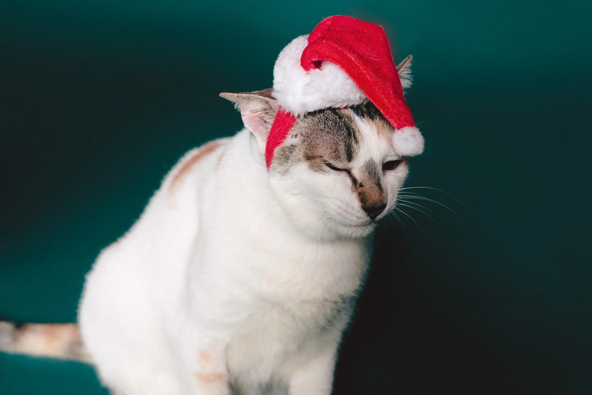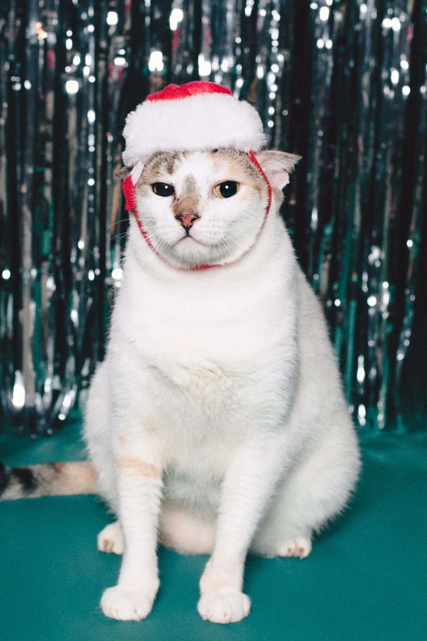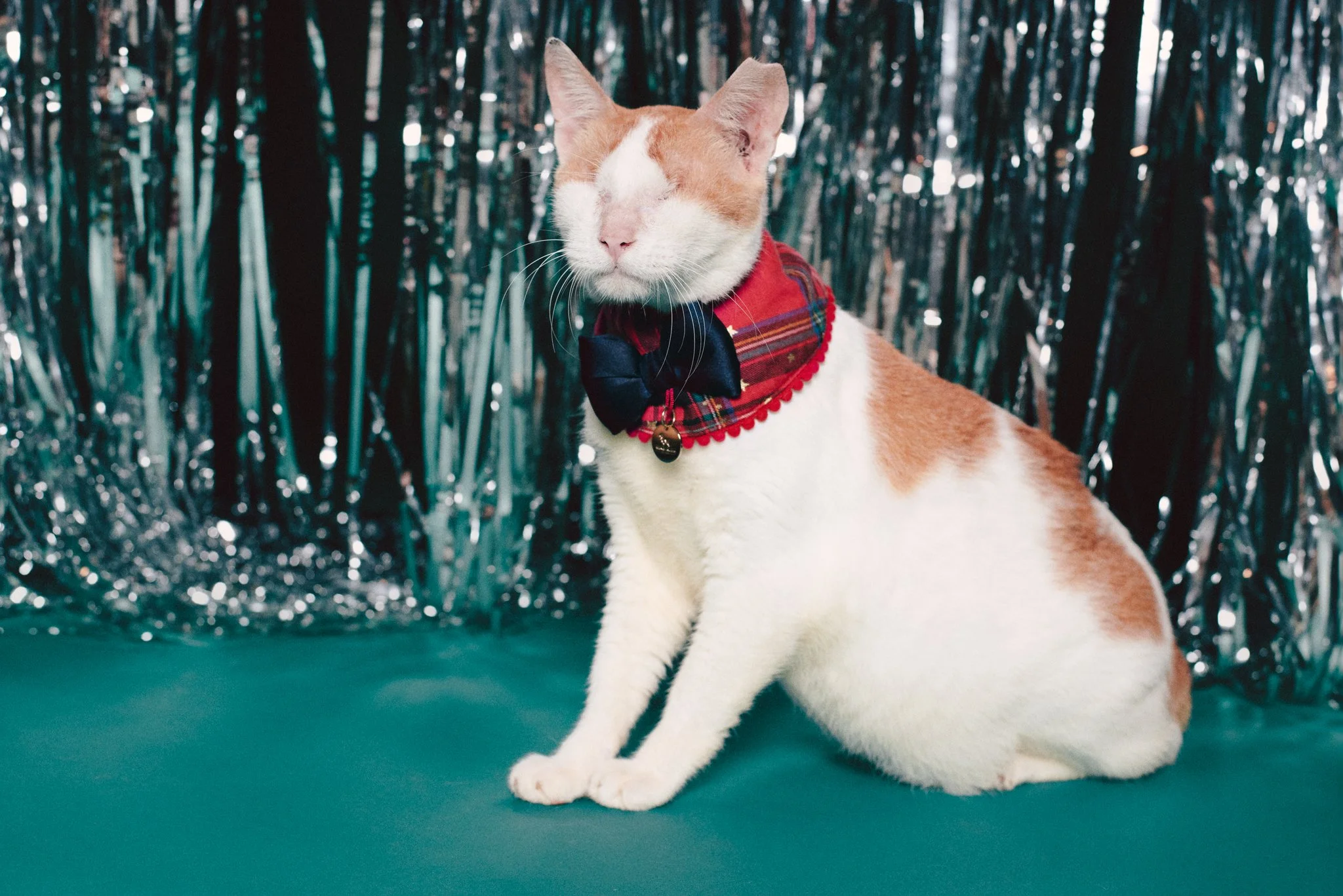 pet owners were welcome to swing by with their own floofs for a little christmas/new year themed photoshoot, or borrow one of the kitties from cat cafe to pose with.
